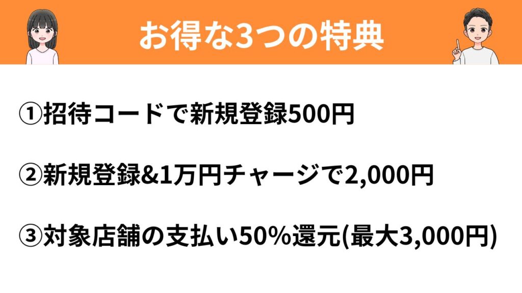 特典③対象店舗の支払いで50%還元(最大3,000円)